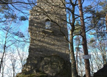 Von Hiltpoltstein aus halten wir uns östlich und wandern nach Wildenfels, einem Ortsteil der Gemeinde Simmelsdorf. Oberhalb des kleinen Orts finden sich die Ruinen der Burg Wildenfels. 2013-14 wurde die Ruine komplett saniert. Von der Burg sind noch Mauerreste des Palas, des Bergfriedes, von weiteren Gebäuden und der Umfassungsmauern vorhanden.
