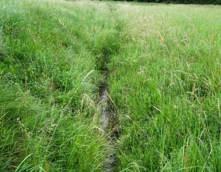 Es gibt keine eingefasste Quelle, wir treffen aber bald auf das Bächlein und machen dann einen Bogen zurück Richtung Atzenhain. Wir sind auch den Wiesenweg näher am Bächlein entlang gelaufen, der war aber ziemlich verwachsen, und wir sind dann auf der Landstraße gelandet. Das wollten wir niemandem empfehlen, deshalb der Bogen.