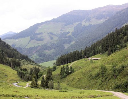 Südöstlich von Hopfgarten im Brixental und ein gutes Stück südwestlich von Kitzbühel wandern wir eine Runde von Rettenbach zum Gasthaus Steinberg entlang der Windauer Ache. Auf dem Hinweg begleiten wir den Bachlauf noch etwas näher als auf dem Rückweg Hinterwindau mit Bergmischwald. Die Windauer Ache, die sich südlich zwischen Kröndelberg und Molterfeldspitze im Reinkarsee bildet, fließt gen Norden und bei Hopfgarten-Haslau in die Brixentaler Ache.