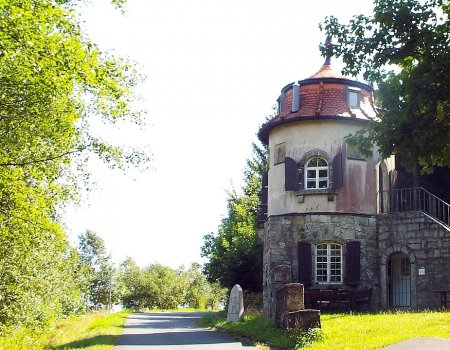 Wir wandern nach Bärnau gen Westen, queren zweimal die St2173. Wir könnten auch durch die Stationen des Kreuzwegs gehen, die zur Wallfahrtskirche Zum gegeißelten Heiland, auch Steinbergkirche genannt, führt. Der Kreuzweg von 1768 steht in einer prächtigen Lindenallee. Die Steinbergkirche wurde von 1765-1768 gebaut und ist barock ausgestattet.