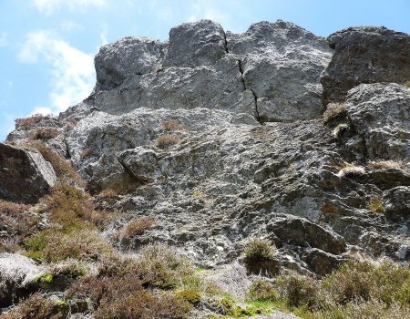 Weiter entlang der Grenze gen Norden und nun bergab gelangen wir zum Weißen Riegel. Von ihm wurden Steine gebrochen, die dem Bau der Künischen Kapelle, südlich von hier, dienten. Der Horizontalsteig bringt uns auf den Osser-Riesen-Steig und wir gelangen dann zum Felsen, genannt Ossersattel, der auch ein Geotop im Landkreis Cham ist, ebenso wie der Osser.