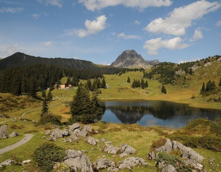 Der Körbersee im Vorarlberger Lechquellengebirge liegt südwestlich des Hochtannbergpasses, der das Lechtal mit dem Tal der Bregenzer Ach verbindet. Der rund drei Hektar große Körbersee hat Trinkwasserqualität. In dem fühlen sich nicht nur Forellen wohl. Man kann im Körbersee auch baden – wenn einem kühle Wassertemperaturen nichts ausmachen.