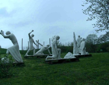 Hinter der Neumühle erreichen wir jetzt das wildromantische Naturschutzgebiet Wörsbachtal. Hier folgen wir dem Verlauf des kleinen Baches für einige Zeit bevor wir auf die andere Seite des Flüsschens überwechseln. Wieder geht es entlang des Baches, nun leicht aufwärts, immer in Richtung Beuerbach. Auf freiem Feld angekommen, wartet nun der kurze Abstecher zum Skuplturenpark, falls nicht schon auf dem Hinweg geschehen.