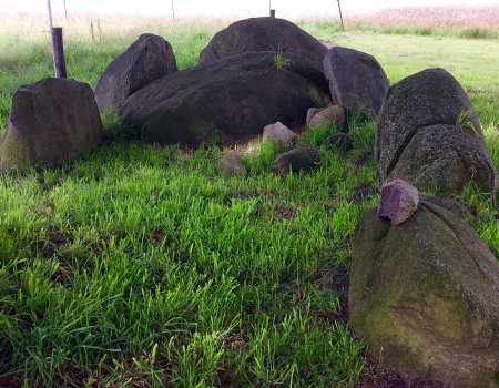 Wir verlassen diesen schönen Ort und wandern bald durch das dichte Mischwald-Gebiet Steinfelder Holz. Nächste Station des Nordpfads ist das Steinfelder Großsteingrab. Das große Megalithgrab ist ungewöhnlicherweise in nord-südlicher Richtung ausgelegt.