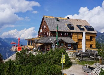 Am südwestlichen Rand des Steinernen Meers und hoch über Saalfelden sitzt diese Hütte auf einem Felsen innerhalb der Berchtesgadener Alpen wie...