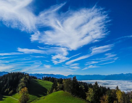 Der 1.064m hohe Pfänder ist der Hausberg von Bregenz am Bodensee, den die Touristiker auch gerne mit dem „Olymp der Urlaubsgötter“ beschreiben. Ein wenig ist damit fast alles gesagt. Vom Olymp aus hat man den herrlichsten Blick ins Dreiländer-Eck: Allgäuer Alpen, Lechtaler Alpen, Bregenzerwald und Gebirge, Arlberggebiet und Silvretta, über den Rätikon in die Schweizer Berge, sogar bis zu den Ausläufern des Schwarzwalds – und natürlich über den Bodensee im Rheintal nebst oberschwäbischem Hügelland.