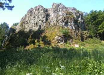Zunächst wandert man leicht abwärts durch den Ort, dann geht es nach links aufwärts in Richtung Reinborn und vorbei an einem im Gebüsch versteckten Hügelgrab namens "Goldkessel".