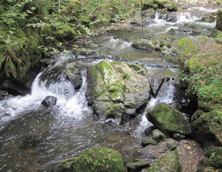 Nachdem die Landstraße L 46 hinter uns liegt, begleiten wir die Lieser zur Wolfsschlucht. Die Wolfsschlucht am Horngraben selbst sparen wir aus, sehen dafür aber einen kleinen Wasserfall an der Kleinen Kyll. Wir passieren die Marienhütte und kommen dann wieder zurück zur Heidsmühle.