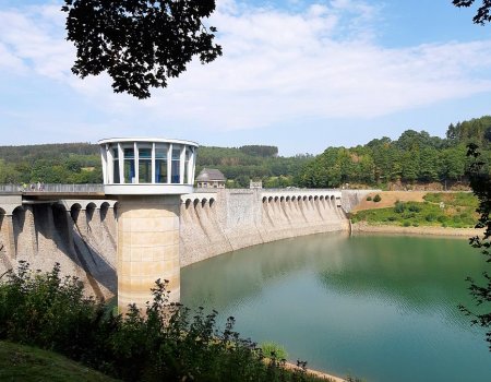 Von der Ebene "0" der Listertalsperre auf die westlichen Höhen mit fantastischen Fernblicken ins Sauerland