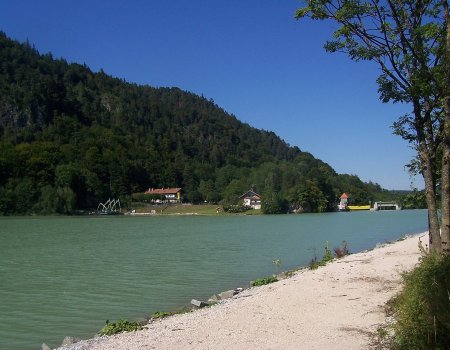 Der Saalachstausee wurde zwischen 1910 und 1913 gebaut. Das Kraftwerk steht unter Denkmalschutz. Wir wandern die leichte und überwiegend ebene Runde mit Seeblicken zwischen der Staumauer Kibling und dem südlichen Unterjettenberg erst am Westufer entlang, dann am Ostufer zurück.