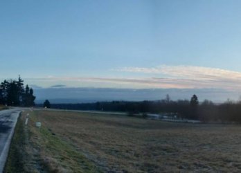 Über einen Bergrücken gelangen wir in den baumfreien Hauksgrund, den wir abwärts folgen. Dann folgt der Anstieg zur Haukuppe. Kurz vorm Gipfel angekommen, wechselt der breite Weg in einen Pfad, der als Wanderweg gekennzeichnet ist. Wir überschreiten die Haukuppe und kommen wenig später zu einem der sichtbaren Windräder. Hinweisschilder warnen uns vor möglichem Eisfall, sonst fallen die gewaltigen Windräder kaum auf und außer einem leichten Rauschen, sind sie auch kaum zu hören. Auf dem Höhenkamm geht es gleich scharf links und wir folgen einer Markierung x3. Diese ist aber an einer Wegekreuzung irreführend, weil nicht markiert. Wir treten aus dem Wald und erblicken im Tal weit unten, unseren Ausgangspunkt Ludwigsau-Tann.