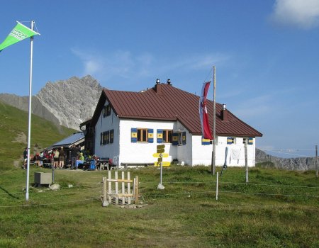 Das Kaiserjochhaus in den Lechtaler Alpen, das auch Winterlager bietet, wird vom Alpenverein der Sektion Leutkirch betreut, wurde 1888 gebaut und bietet herrliche Aussichten. Uns umgeben die Gipfel von Grießkopf (2.581m), Stanskogel (2.757m), Malatschkopf (2.390m). Hier kommen auch der Lechtaler Höhenweg und der Adlerweg von St. Anton nach St. Johann vorbei.