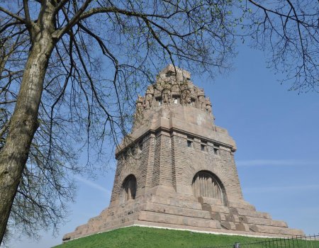 Das 91m hohe Völkerschlachtdenkmal ist eines der bekanntesten nationalen Monumente und bis heute eines der größten Denkmäler Europas. Vom Fuß des Sockels bis zur Aussichtsplattform auf der Spitze sind es 500 Stufen. Wer sich die meistens eng gedrehte Wendeltreppe nicht zutraut, kann mit einem Aufzug schon einmal bis auf 57m Höhe fahren. Vor dem Denkmal befindet sich ein großes Wasserbecken, der sogenannte „See der Tränen um die gefallenen Soldaten“.
