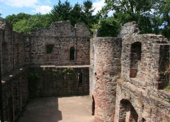 Wir wandern vom Bahnhof Zwingenberg per Schlossstraße zur malerisch gelegenen Burg Zwingenberg aus der Stauferzeit. Der Neckar fließt links von uns und wir umrunden das Burgareal an dessen Ostseite. Die Zwingenberger galten als Raubritter, wurden 1364 von der Burg verjagt und sie wurde geschliffen. Anfang des 15. Jahrhundert wurde sie erneut aufgebaut. Teil der Burganlage ist die Schlosskapelle aus dem 18. Jahrhundert, die man beispielsweise für Hochzeiten anfragen kann. Oberhalb der Burg Zwingenberg fanden sich Reste einer weiteren Spornburg, Burg Fürstenstein (um 1340), von der lediglich Bruchsteine zu finden sind.