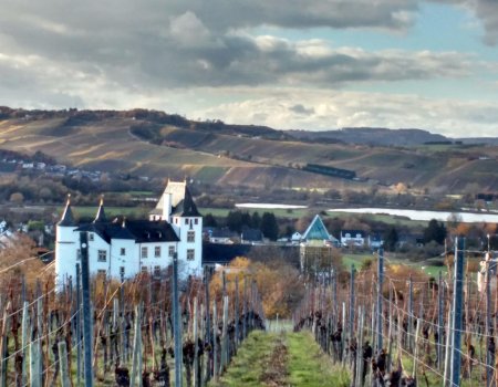 Diese kleine Wanderung an einem hellen Novembertag 2018 beginnt am Schloss Berg/Spielcasino, wo der Dolinenweg durch die Weinberge hinauf zum Waldrand führt. Jetzt gelangt man auf schöne Streuobstwiesen und kommt kurz danach an der ersten Doline vorbei.