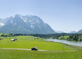 Wir beginnen die vierte Tageswanderung auf dem Spitzenwanderweg in der Zugspitzregion in Krün. Krün gehört zum Wandergebiet Alpenwelt Karwendel...