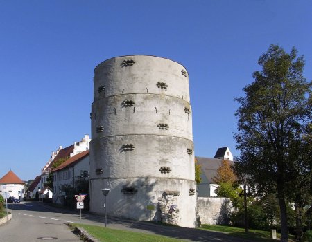 Abwärts kommen wir nach Trochtelfingen und widmen uns der weiteren Historie, wie beim Hohen Turm, der einen stattlichem Umfang von 48m hat, ein wenig ausschaut wie bejahrte Hochzeitstorte mit dekorierten Schießscharten. Benachbart ist das Geschichts- und Heimat-Museum. Wir wandern in Richtung Pulverturm.